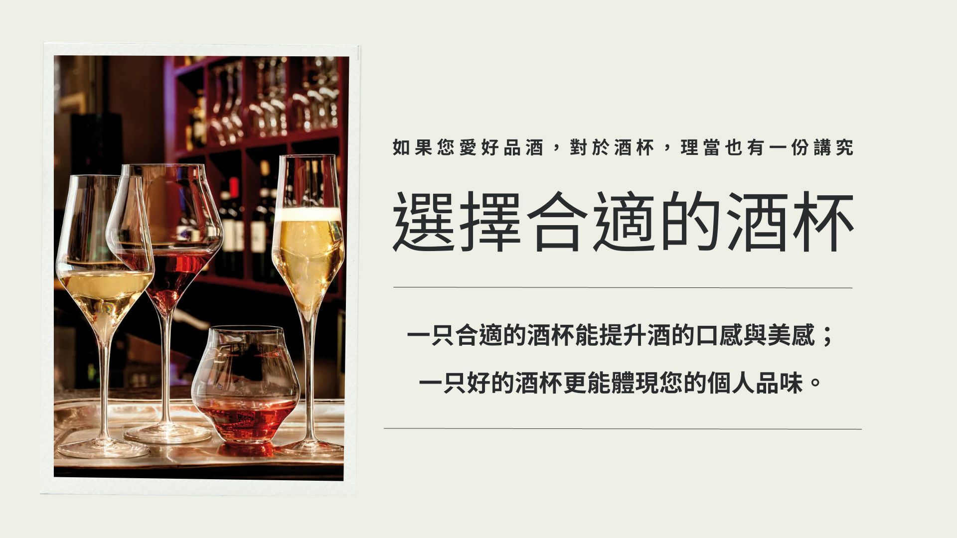 酒杯除了喝酒的功能外,還可以美觀與提升酒的味道,酒杯是依酒的成份與特質來塑型的。