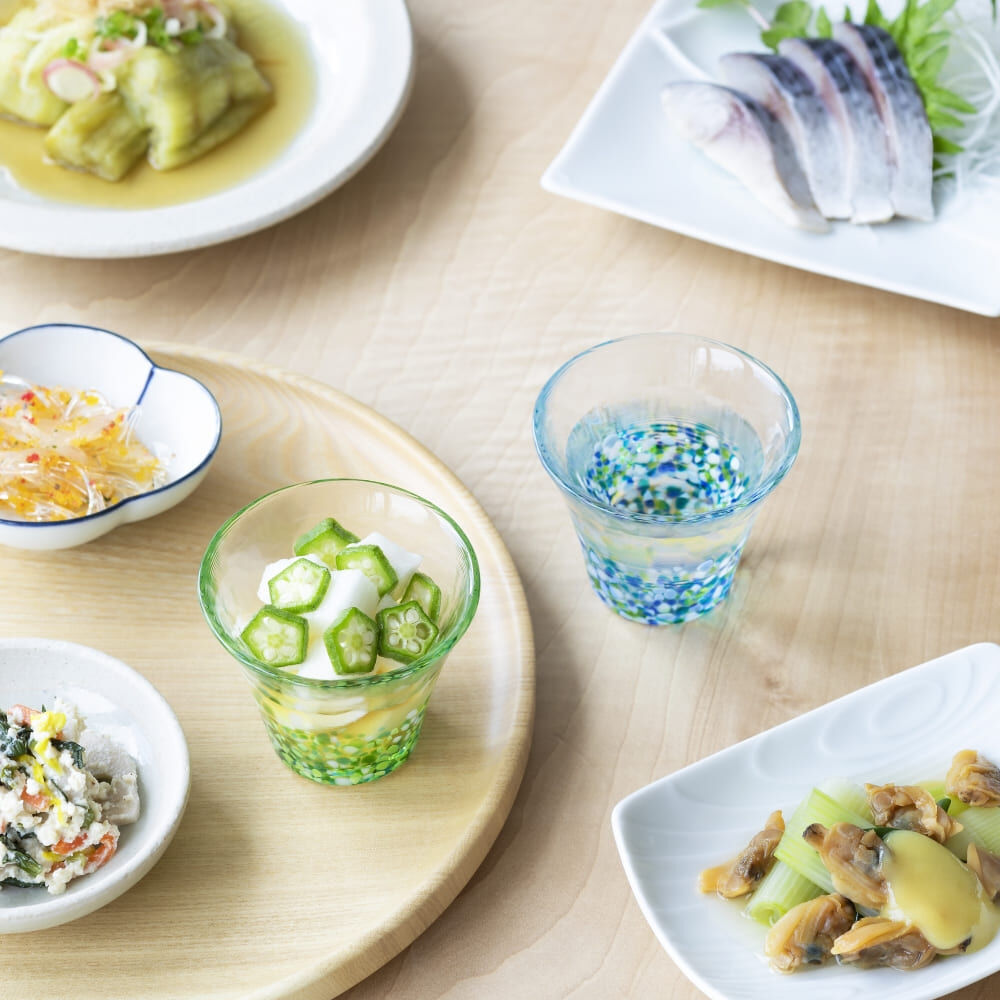 以多彩玻璃描繪日本四季風景的詩意色彩,「にほんの色 ふうけい」系列,全新推出富有情緒溫度的清酒杯。
