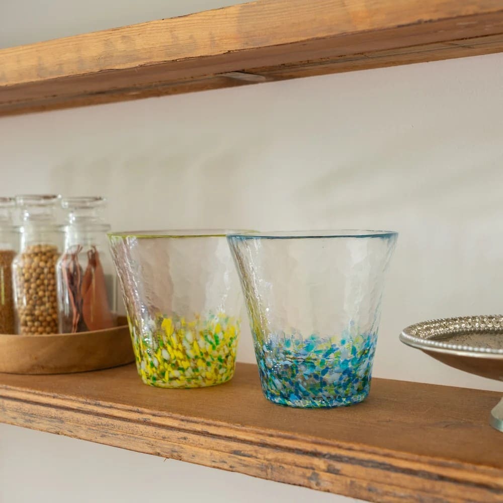 晨曦輕灑,光影流轉,琉璃染上夏日的繽紛色彩。燦夏玻璃杯禮盒,以細膩的彩色玻璃碎光,映照日本四季之韻。