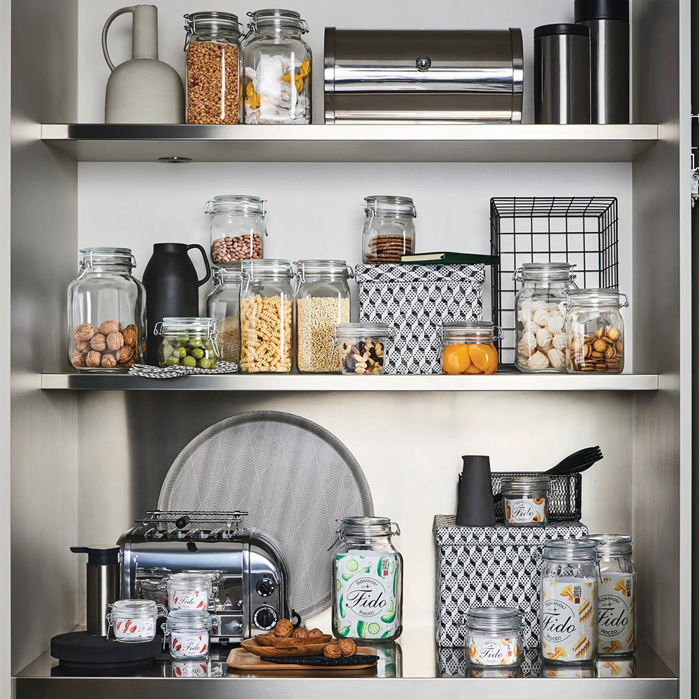 義大利知名玻璃大廠Bormioli Rocco設計製造的經典卡扣式密封罐,上蓋與罐身皆以玻璃製成,搭配上氣密扣環與橡膠墊圈能有效地隔絕空氣與水份,延長食物保存期限。